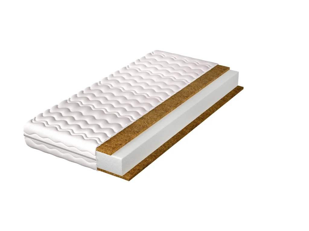 Hypoalergenní oboustranná pěnová matrace o rozměrech 90 × 200 cm nabízí pevnou a pohodlnou oporu. Jádro tvoří 8 cm pěny T25 a dvě kokosové desky o tloušťce 1 cm pro zlepšení stability a prodyšnosti.