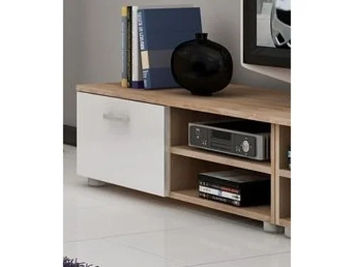 Kompaktní RTV stolek FARGONA v kombinaci dubu sonoma a bílé lesklé plochy je ideálním řešením pro menší obývací prostory. Je vyroben z laminované desky o tloušťce 16 mm s ABS hranou 0,6 mm, což zaručuje pevnost a snadnou údržbu.