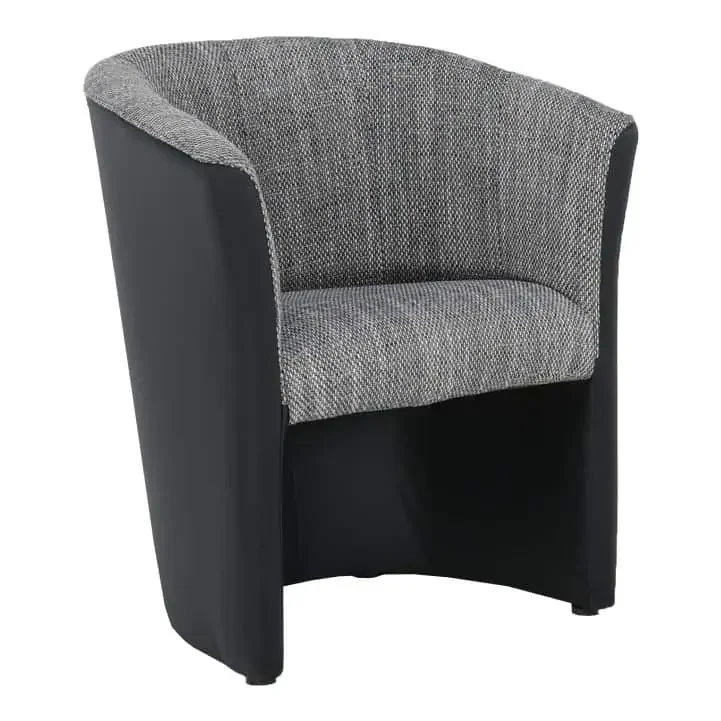 Křeslo Cuba kombinuje černou ekokožu s šedou látkou Lava s melírem 05, čímž vzniká nadčasový a elegantní kontrast. Hodí se do moderních i klasických interiérů a skvěle doplní obývací pokoj, halu, salón či čekárny.