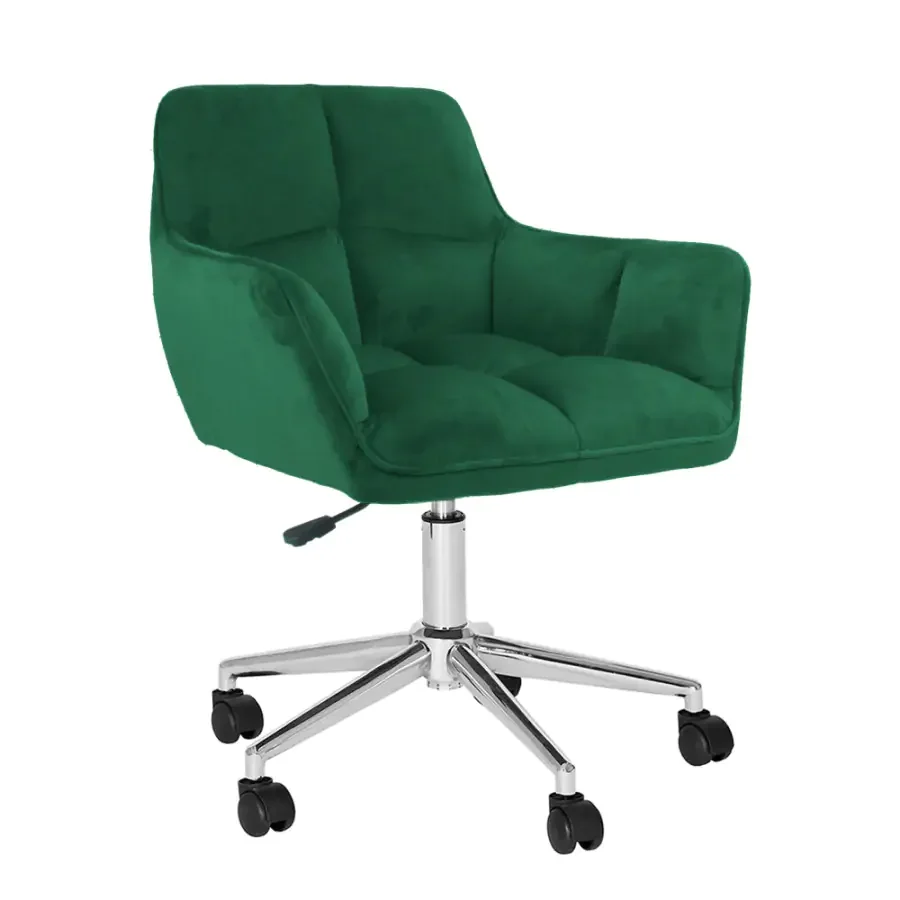 Křeslo HAGRID NEW v elegantní smaragdové barvě spojuje styl s opravdovým komfortem pro pracovní i domácí prostředí. Příjemné čalounění z jemné sametové látky dodává interiéru luxusní nádech a příjemně se dotýká pokožky během dlouhého sezení.
