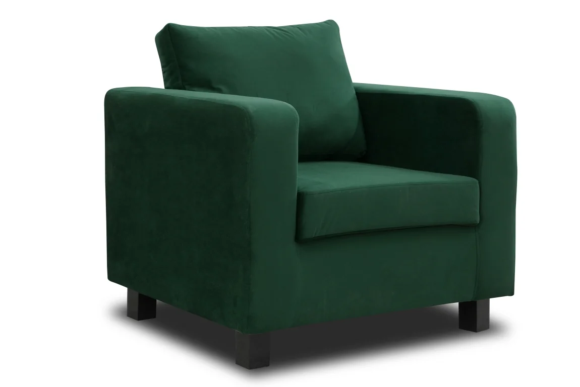 Elegantní křeslo LEITO v zeleném odstínu potahu Itaka 10dodá vašemu interiéru svěží a nadčasový vzhled. Polštáře jsou vybavené zipy, aby se daly snadno čistit a pro dosažení komfortního posezení na míru.