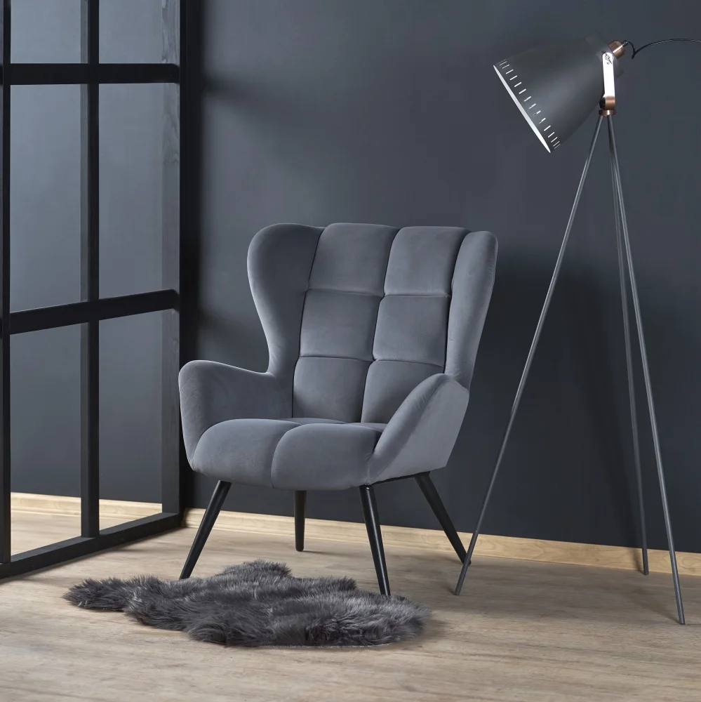 Křeslo MADIBIRA v elegantní šedé barvě s černými nožkami spojuje styl a pevnost. Rám je vyroben z masivu a potah z kvalitní látky, což zajišťuje dlouhou životnost a snadnou údržbu. Rozměry 75 × 91 × 86 cm (šířka x výška x hloubka) a výška sedu 48 cm garantují pohodlné sezení.