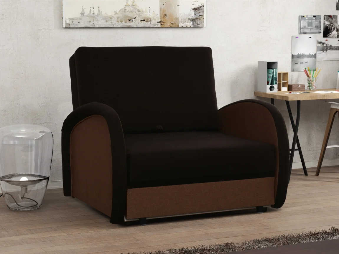 Rozkládací křeslo MIMAS I B je nabízeno v provedení tmavě hnědé látky a poskytuje pohodlí během posezení i možnost spaní pro hosty. Potahové varianty zahrnují Etna 27 (tmavě hnědá) a Etna 24 (hnědá), takže si můžete vybrat podle stylu vašeho interiéru.