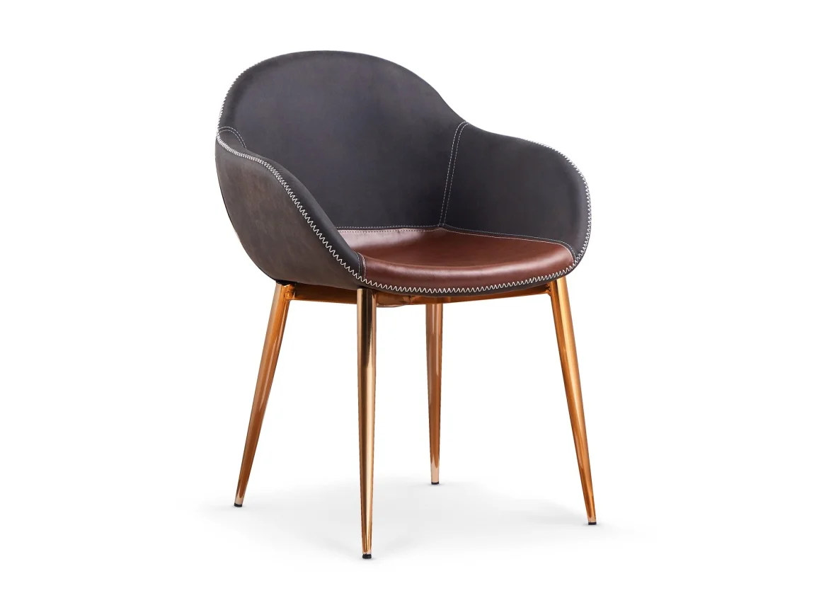 Křeslo MYRIOS kombinuje tmavě šedé a hnědé odstíny pro nadčasový vzhled, který se hodí do různých interiérů. Rozměry (š x v x h): 57 x 79 x 53 cm, výška sedu 47 cm. Materiál tvoří ekokůže a chromovaná ocel, což zajišťuje dlouhou životnost a snadnou údržbu.