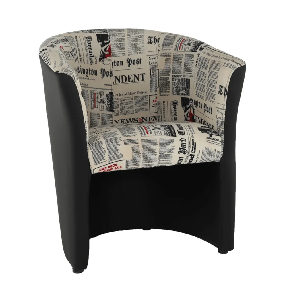 Křeslo Tuangu – potisk novin a černá ekokůže Křesla