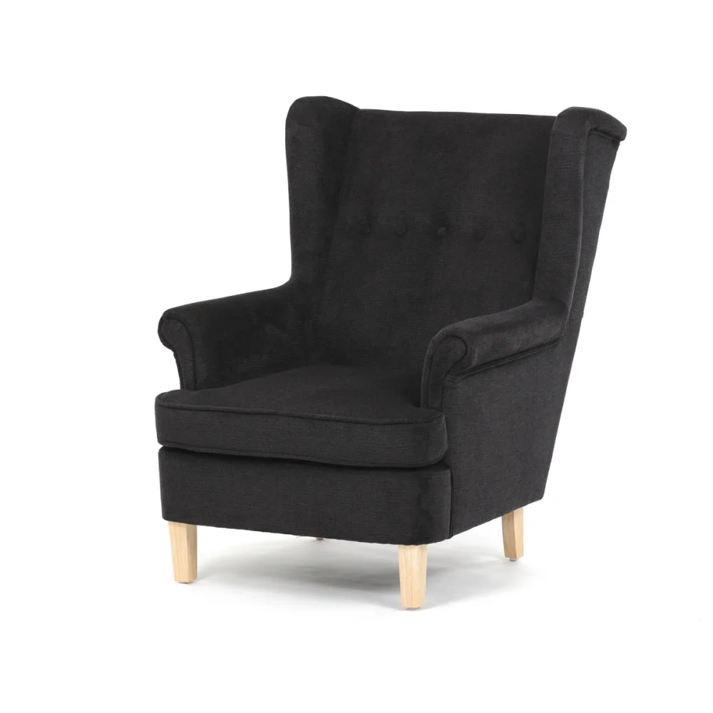 Křeslo WINVON v elegantní černé barvě spojuje nadčasový vzhled s pohodlím pro každodenní posezení. Čalounění z kvalitní látky je příjemné na dotek a zároveň odolné vůči opotřebení.