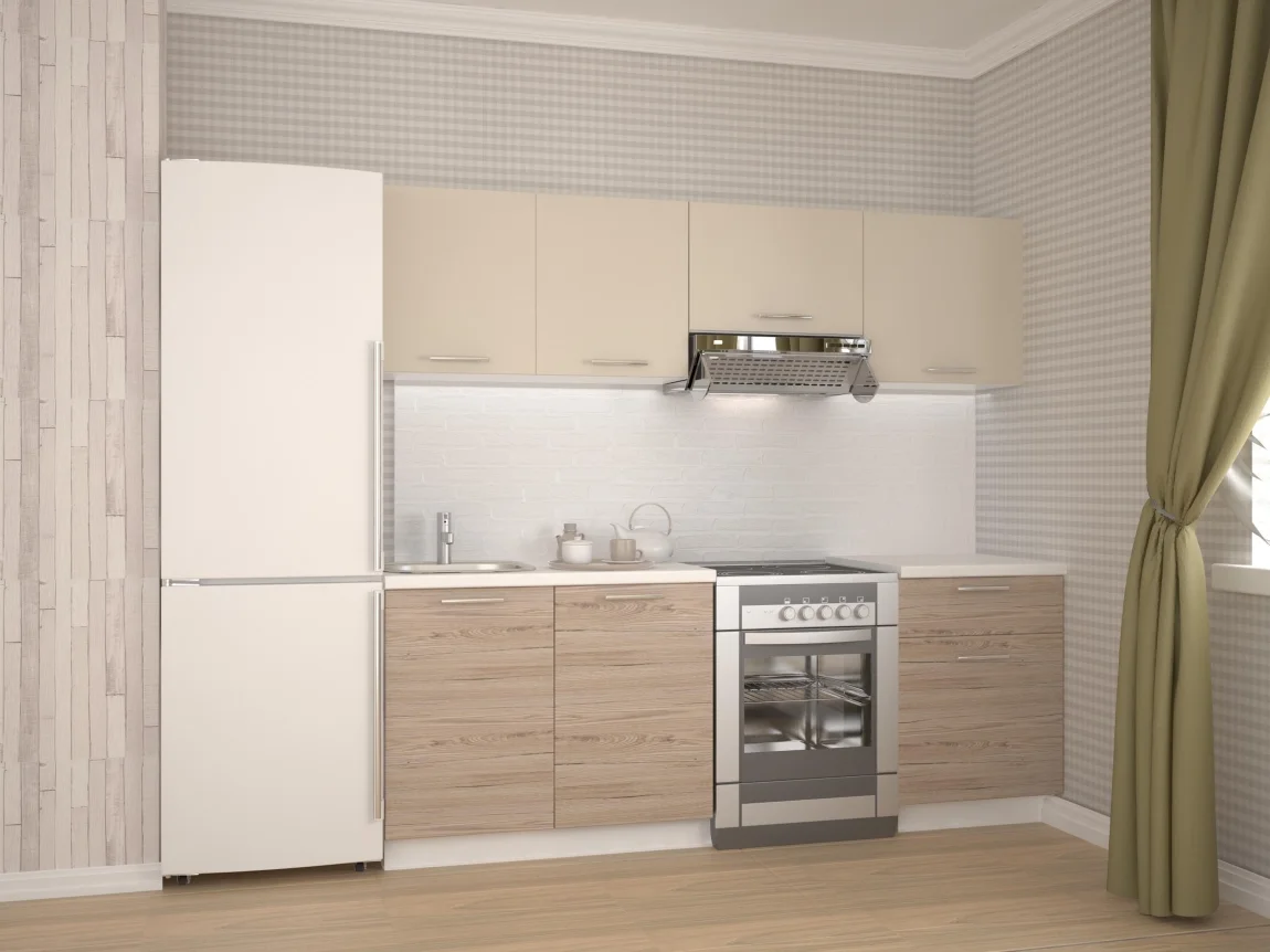 Kuchyně BUENA 160/220 cm – korpus bílý, dvířka béžová / dub San Marino Kuchyně