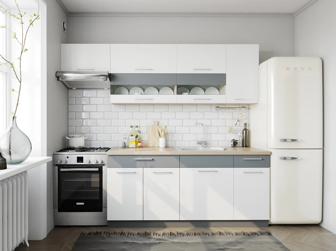 Kuchyně Ruthin 180/240 cm – bílý lesk a grafit mat Kuchyně