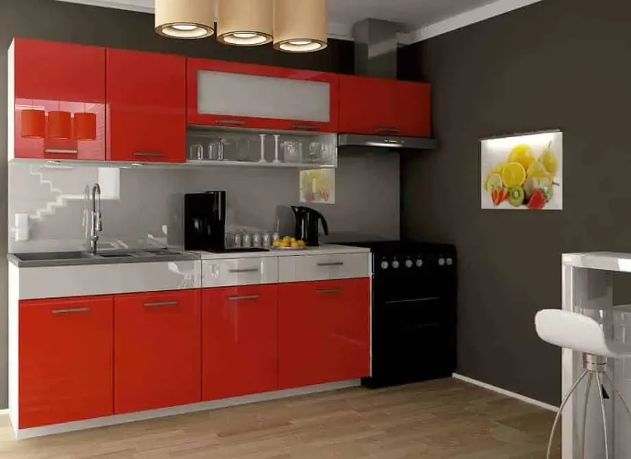 Parametry produktu Kuchyňská linka Dolomiti 180/240 – červený lesk s bílým páskem