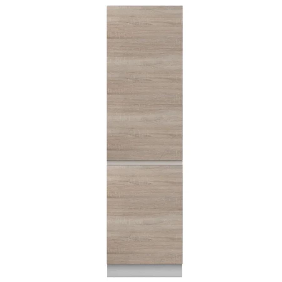 Dolní dvoudveřová vysoká potravinová skříňka LINE SONOMA D60 se hodí do moderní kuchyně a poskytuje praktické úložné prostory pro potraviny a doplňky. Je vyhotovena z kvalitní laminované dřevotřískové desky v dezénu dub Sonoma, korpus odpovídá stejnému odstínu a bílé lišty dodávají svěží kontrast. Součástí balení je dolní lišta a skříňka se dodává v demontovaném stavu, což usnadňuje dopravu i montáž. Díky odolnému povrchu je snadná údržba a skříňka zajišťuje dlouhodobou spolehlivost a organizované uskladnění v kuchyni.