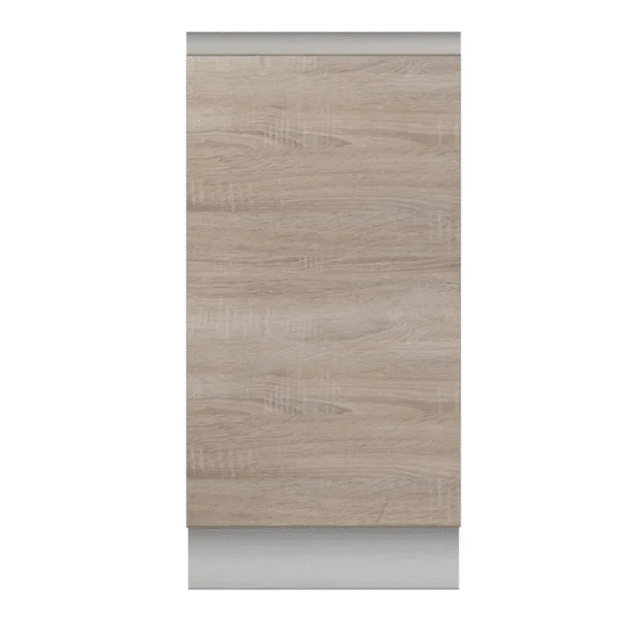 Dolní jednodveřová skříňka určená pro modulární kuchyňský systém v moderním designu. Je vyrobena z kvalitní laminované dřevotřískové desky s povrchovou úpravou dub sonoma a korpus zůstává bílé, což vytváří svěží kontrast.