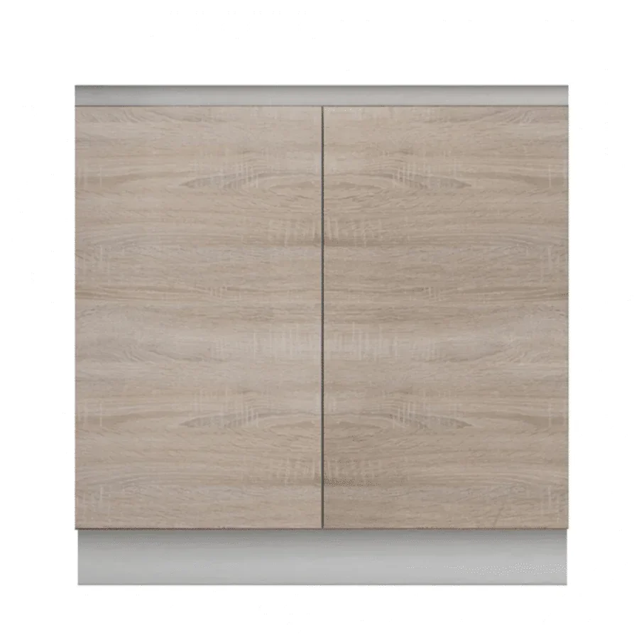 Dolní dvoudveřová skříňka do kuchyně z laminované dřevotřísky v dekoru dub Sonoma s bílým korpusem nabízí praktické úložné místo pro váš dřez. Skříňka se dodává bez pracovní desky a s dolní lištou, což usnadňuje montáž a vizuální dojem. K dřezu lze dokoupit univerzální dřez ve tvaru L či P (viz související doplňky). Dodáváno v demontu.