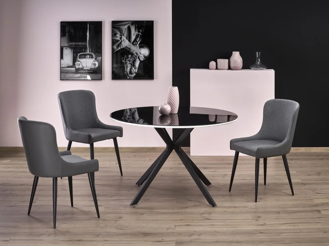 Kulatý jídelní stůl RHENUS v provedení černo-bílé barvy představuje stylové řešení pro jídelní kout i kuchyni. Deska je vyrobena z lakované MDF a rám tvoří lakovaná práškovaná ocel, díky čemuž stůl zůstává pevný a dlouho vydrží.