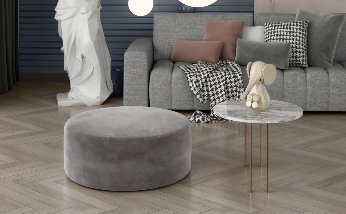 Elegantní kulatý taburet BREVIFOLIA v provedení šedé látky Monolith 85 dodá interiéru jemnou eleganci a pohodlí. Sedací plocha o průměru 75 cm a výšce 42 cm nabízí komfortní sezení a praktický odkládací prostor na drobnosti. Upozornění: ilustrační fotografie ukazuje rozměry taburetu; skutečný výrobek může mít jinou látku. Dodáváno v demontu, montáž je rychlá a jednoduchá. Vhodný doplněk do obývacího pokoje, ložnice i pracovního kouta, který zkvalitní vzhled prostoru a poskytne pohodlí při každodenním používání.