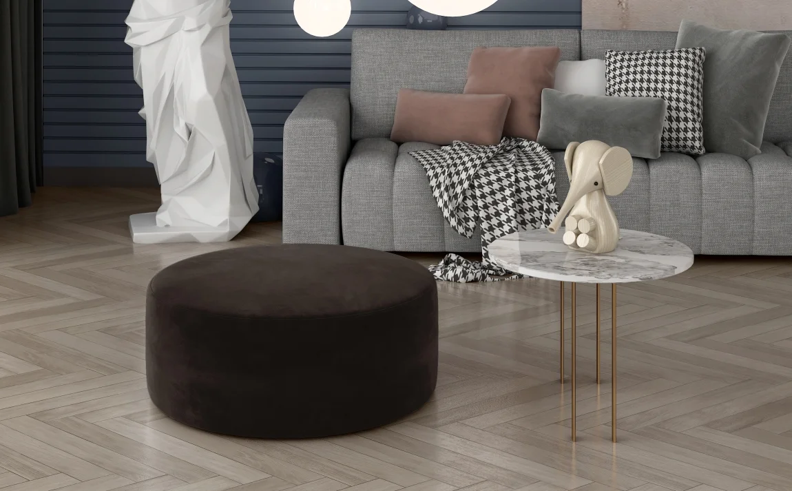 Čalouněný kulatý taburet v provedení Monolith 29 s tmavě hnědou látkou působí elegantně a poskytuje pohodlné sezení. Průměr dosahuje 75 cm a výška je 42 cm, takže skvěle zapadne do obýváku i pracovního prostoru a zároveň slouží jako praktická odkládací plocha.
