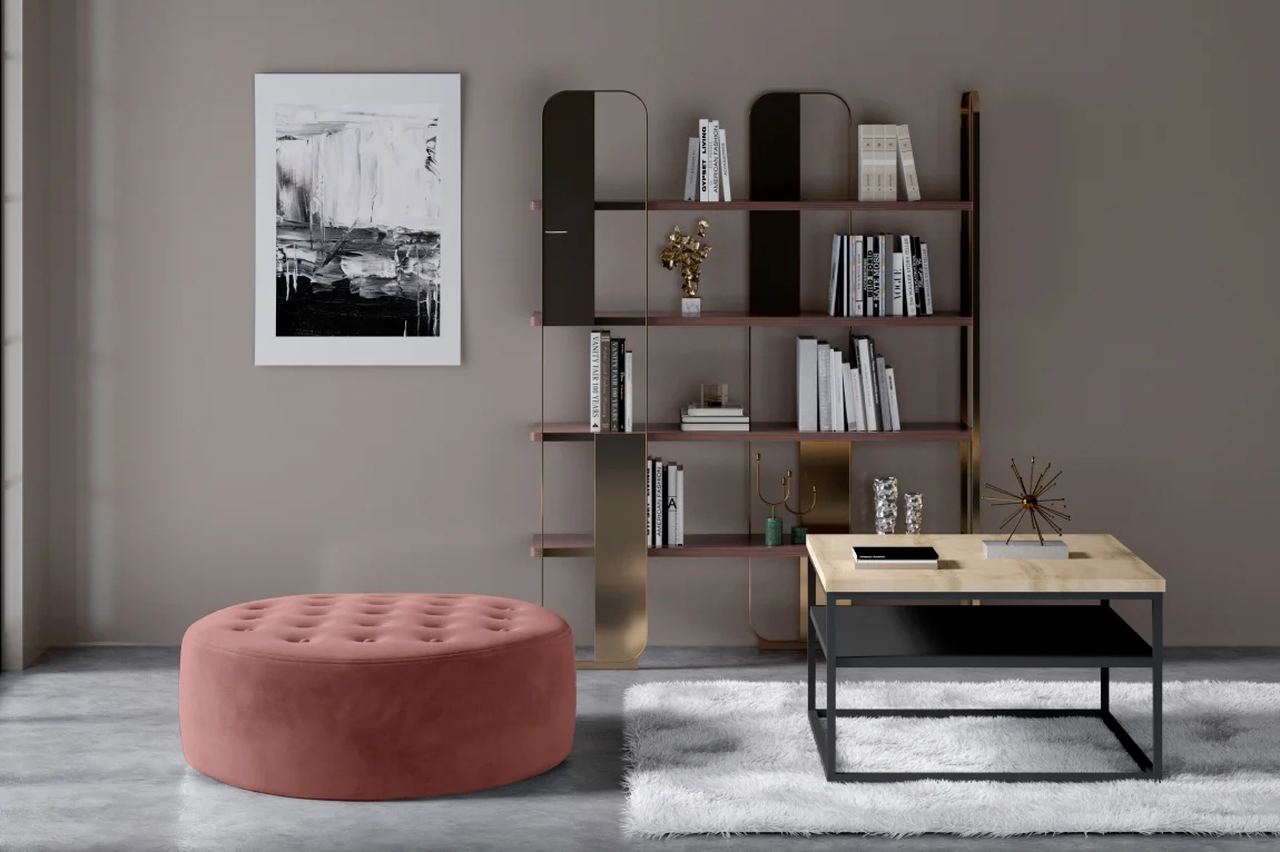 Elegantní kulatý taburet YKELI s čalouněním v odstínu růžové se pyšní potahem ze látky Mat Velvet 63, která působí jemně a zároveň je odolná proti opotřebení. Sedací plocha má průměr 70 cm, výška sedu je 28 cm a výška nožek činí 2 cm. Ilustrační foto ukazuje vzhled s rozměry, skutečný materiál může být jiný. Taburet se dodává v demontu pro pohodlnější dopravu a montáž. Díky elegantní růžové barvě se hodí do různých stylů interiéru a lze jej skvěle kombinovat s ostatními prvky. Látka Mat Velvet je příjemná na dotek a snadno se čistí, takže tento kousek přináší pohodlí i dlouhodobou praktickou hodnotu.