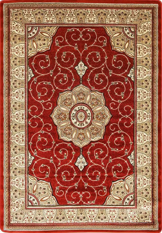 Kusový koberec Adora 5792 T Terra přináší do obývacího prostoru orientální vzor s výraznou červenou kombinací a teplým Terra odstínem. Tepelně upravené vlákno heatset je jemné na dotek, díky odolnému materiálu a snadno odpuzuje špínu, což usnadňuje údržbu. Výška vlasu 10 mm zajistí příjemnou měkkost pod nohama a zároveň dlouho drží svůj tvar. Koberec je k dispozici v několika velikostech, takže ho jednoduše sladíte s vaším dispozičním uspořádáním. Navíc dokáže navodit útulnou atmosféru a zlepší akustiku v místnosti. Upozornění: po vybalení z role mohou zůstat drobné nerovnosti vláken, vyrovnání trvá několik dní. Doporučení: ideální volba pro obývací pokoj, ložnici i chodby; díky své odolnosti a snadné údržbě bude sloužit dlouho.