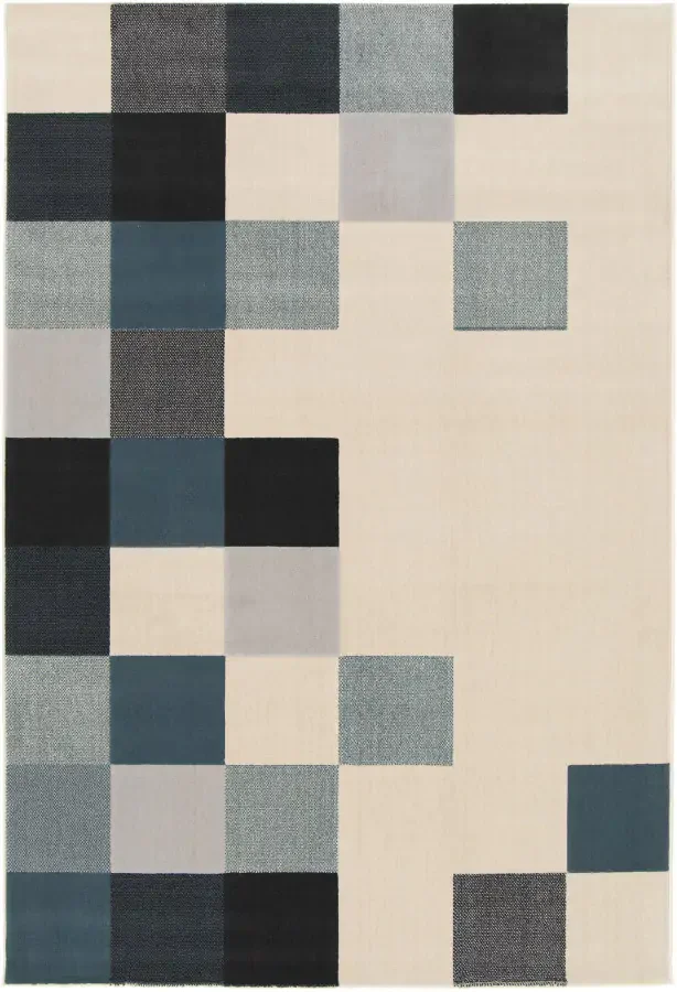 Koberec Canvas kombinuje barevné čtverce v odstínech modré, tyrkysové a šedé na teplém béžovém podkladu. Jeho moderní vzor dodává interiéru hloubku a zajímavou texturu. Vlas má výšku 4 mm a je vyroben z odolného polypropylenu, takže koberec zvládne i frekventovanější místa, například obývací pokoj. Delší strany jsou pečlivě prošité a kratší končí elegantním lemováním. Má certifikát OEKO-TEX, který garantuje nezávadnost textilu a šetrnost k životnímu prostředí. Díky nízkému vlasu a snadné údržbě snadno odstraníte skvrny a koberec si dlouho zachová svěží vzhled. Navíc jeho neutrální barevnost se hodí do různých stylů interiérů a podpoří pohodlnou atmosféru domova.