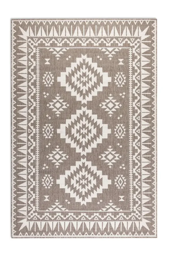 Oboustranný koberec s dominantní béžovou barvou dodá vašemu prostoru harmonii a hodí se do obývacího pokoje, chodby i na terasu. Jedna strana je světlá, druhá tmavější, takže si každý den můžete vybrat vzhled podle nálady.