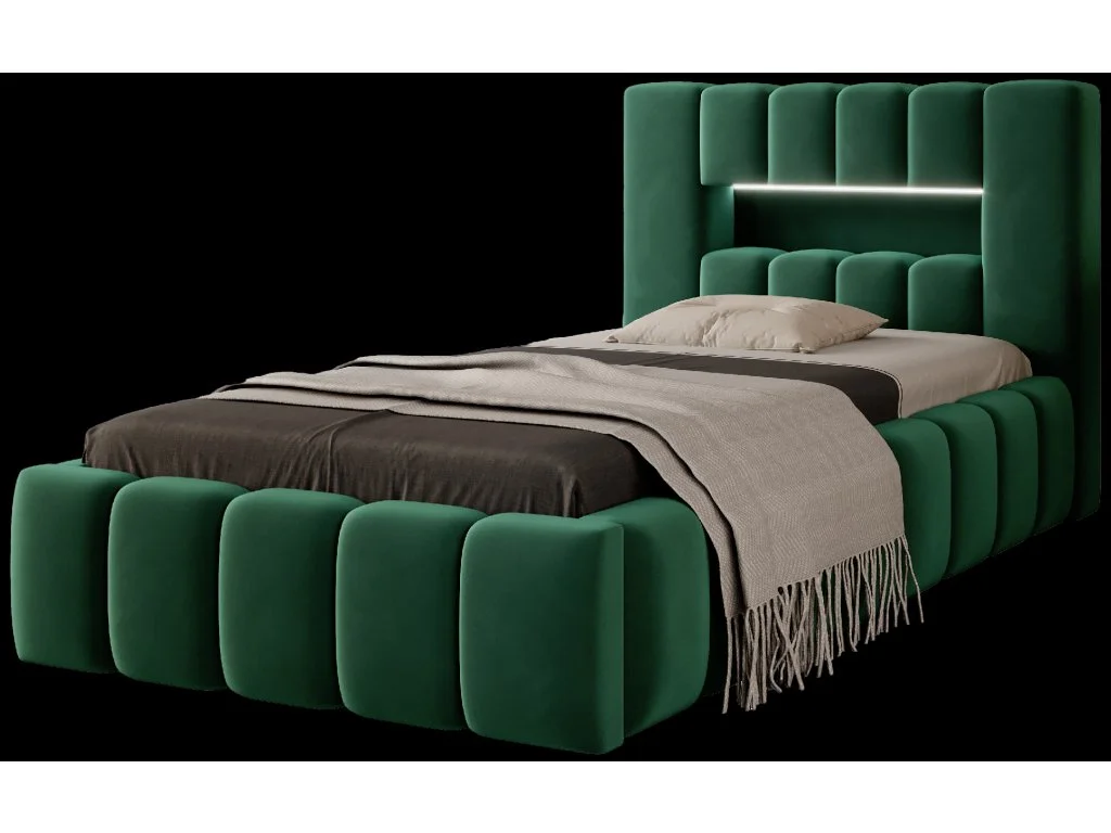 Ložná plocha 90 × 200 cm poskytuje dostatek místa pro klidný spánek a pohodlné ležení. Hlava a bočnice jsou vyplněné dodatečnou pěnou, což zajišťuje jemný dotyk a současně výrazné tvarování celé postele. Proti okázalé eleganci podtrhují výrazná podélná prošití a široká paleta barevných variant, které se bez problémů sladí s vaším interiérem. Navíc v čele je integrováno LED osvětlení, které večer příjemně zpříjemní relax a vytvoří atmosféru. Díky kovovému rámu, plynovému výtahu a praktickému kontejneru s úložným prostorem je Lamica nejen stylová, ale i velmi funkční volba pro moderní ložnici.
