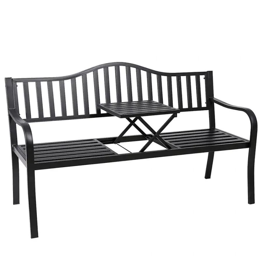 Lavička DAGNO je promyšleným kouskem pro vaši zahradu a pohodlné posezení. Integrovaný vysouvací stolek se nachází v sedací části a jednoduše ho vysunete, čímž získáte praktický prostor pro nápoje či drobnosti. Vyrobena je z odolné černé oceli, která zaručuje dlouhou životnost i v náročných venkovních podmínkách. Sedací část a opěradlo tvoří kovové lamely, které poskytují stabilní oporu a pohodlí při sezení. Rozměry lavičky jsou 150 x 60 x 85 cm, sedací plocha má šířku 143 cm, hloubku 40 cm a výšku 39 cm; nosnost dosahuje 170 kg. Dodáváno v demontu pro snadnou montáž na místě.
