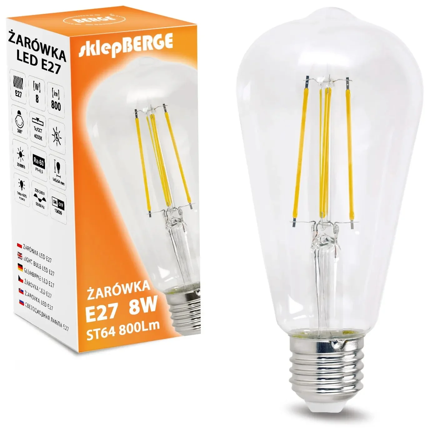 Moderní dekorativní LED žárovka s závitem E27 a výkonem 8 W představuje efektivní a energeticky úsporné osvětlení vhodné do různých typů lamp a svítidel. Díky technologii LED dosahuje vysoké svítivosti 800 lumenů při spotřebě energie, kterou by odpovídala tradiční 70W žárovka, což přináší výrazné snížení nákladů na elektřinu.