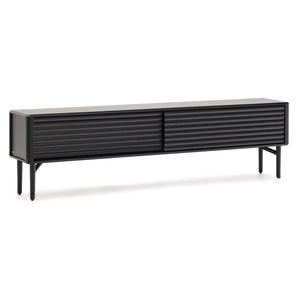 Moderní TV stolek s dubovým dekorem v elegantní černé barvě nabízí praktické rozměry 200x57x35 cm. Tento kus nábytku nejenže skvěle zapadne do vašeho obývacího prostoru, ale také poskytuje dostatek místa pro vaše elektronické zařízení a doplňky. Díky své univerzální estetice se snadno začlení do různých stylů interiéru a přinese do vašeho domova moderní a funkční vzhled. Tento stolek je ideální volbou pro ty, kteří hledají kombinaci praktičnosti a elegance.