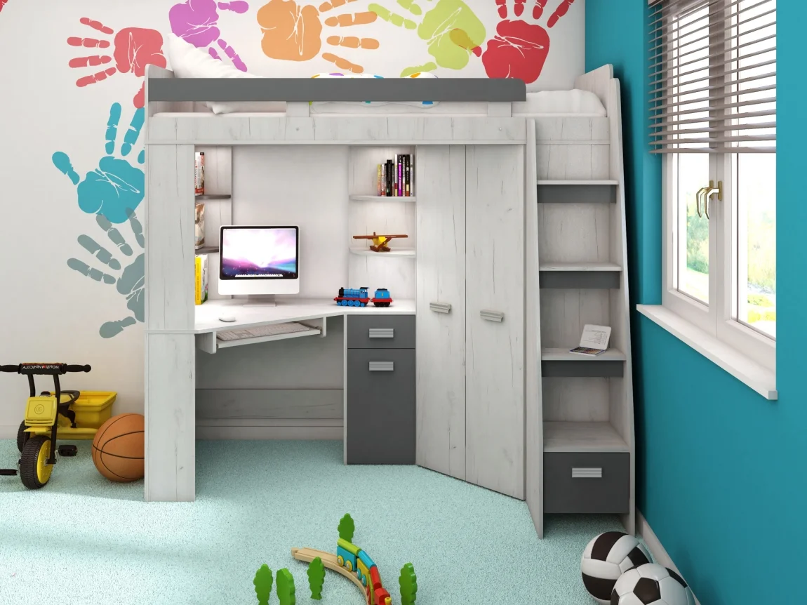 LENY – Multifunkční patrová postel, pravé provedení, craft bílý/grafit Dětský pokoj