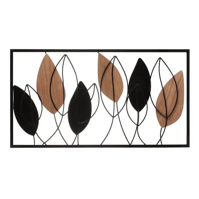 Listy v rámu vnášejí do prostoru kombinaci kovové elegance a tepla dřeva. Moderní vzhled dodává nástěnné kompozici nadčasovost, která se hodí do všech obytných zón. Rám je v černé barvě a listy tvoří kontrast mezi hnědými a černými tóny, čímž vzniká sofistikovaný a stylový dojem. Použité materiály zahrnují kovové prvky a MDF desky, které zajišťují pevnost a dlouhou životnost. Je vhodná pro oživení obývacího pokoje, chodby nebo pracovny a díky snadnému zavěšení ji rychle zvládnete instalovat. Navíc díky univerzálnímu vzhledu se hodí k různým stylům interiéru a skvěle se kombinuje s dalšími dekoracemi.