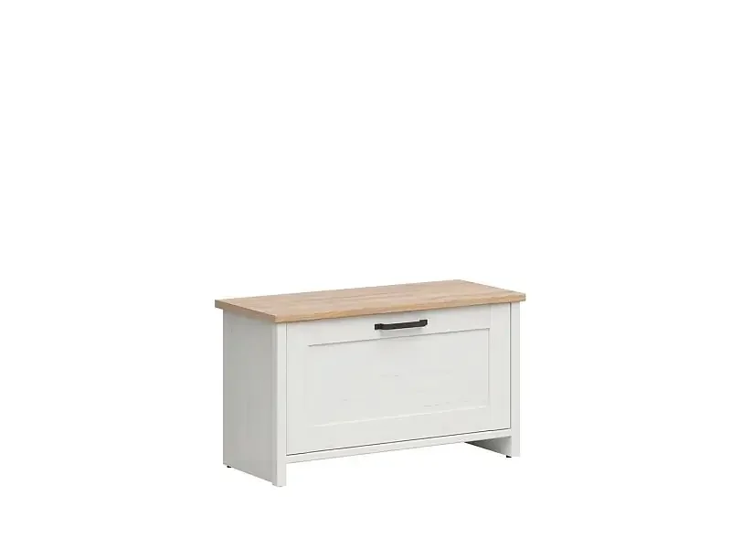 Loksa botník SFK1D v kombinaci barev borovice bílá anderson a dub grandson přináší do předsíně moderní a nadčasový vzhled. Jeho kvalitní zpracování a ozdobné lišty podtrhují elegantní charakter, který se hodí do různých interiérů. Dvířka se vyklápějí dolů a pro pohodlné používání slouží kovová černá úchytka. Díky pantům s plynulým tichým otevíráním se dvířka otevírají tiše a bez námahy. Materiál je nábytková deska, která poskytuje pevnost a snadnou údržbu. Případně doplňte věšákový panel, zrcadlo a skříň Loksa a vytvořte si kompletní předsíň v elegantním stylu. Horní deska unese až 15 kg. Dodáváno v demontu.