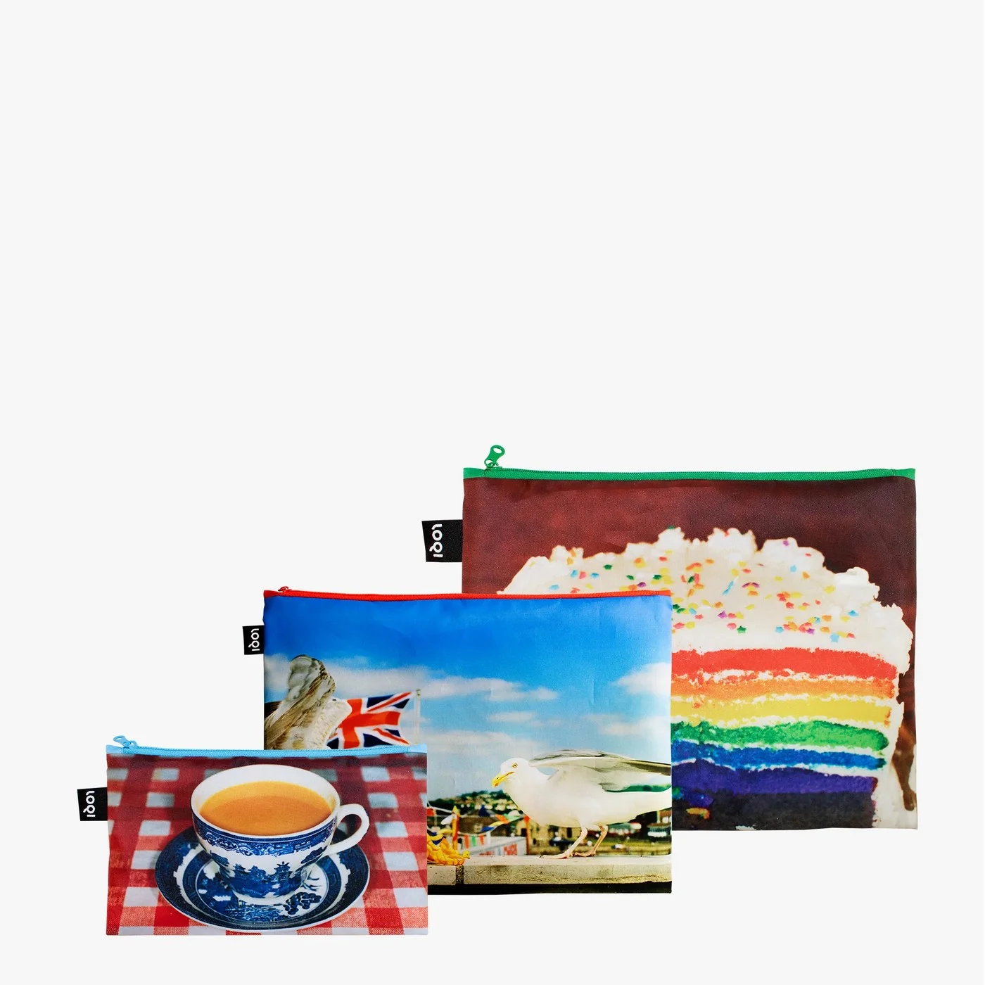 Parametry produktu LOQI taštičky na zip – 3 ks motivy Martin Parr: Seagulls, Real Food, England
