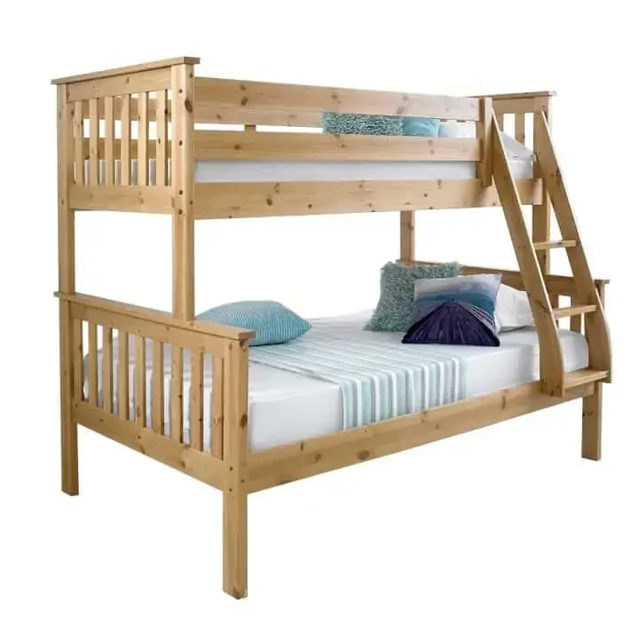 Patrová postel LUINI je vyrobena z borovicového dřeva s přírodním povrchem a nabízí pevnou konstrukci se standardními rošty. Postel má dvě odlišně široká lůžka: spodní 140x200 cm a horní 90x200 cm, horní lůžko je užší a lůžka mají po rozložení odlišnou výšku. Díky možnosti rozdělení na dvě samostatná lůžka je skvělá volba pro proměnlivé potřeby dětského pokoje a pro dospívající. Mezi lůžky je zhruba 80 cm prostoru, což zajišťuje pohodlné pohyby. Součástí je pevný žebřík, který lze upevnit na levou i pravou stranu postele, a konstrukci lze dodatečně upravit k rozkladu na dvě samostatná lůžka. Nosnost spodního lůžka je 100 kg, horní 80 kg. Dodáváno v demontu.