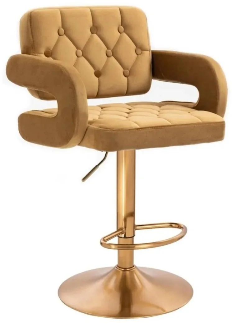 Elegantní barová židle ADRIA VELUR s luxusním zlatým talířem představuje spojení moderního designu a pohodlí. Její originální tvar, široký a měkký sedák s prošíváním a zdobenými knoflíky vytváří vynikající dojem a poskytuje komfort při dlouhém posezení. Vyrobena z hebkého, odolného semiše Velur, který je nejen příjemný na dotek, ale také snadno udržitelný, je ideální volbou do elegantních interiérů, jako jsou bary, restaurace nebo domácí jídelny. Pevná kovová základna zajišťuje stabilitu a odolnost, zatímco nastavitelné pneumatické zdvihání a otočný sedák o 360 stupňů umožňují maximální přizpůsobení. Tato židle je skvělou volbou pro profesionální prostory i domácí prostředí, kde přidá na stylu a komfortu.