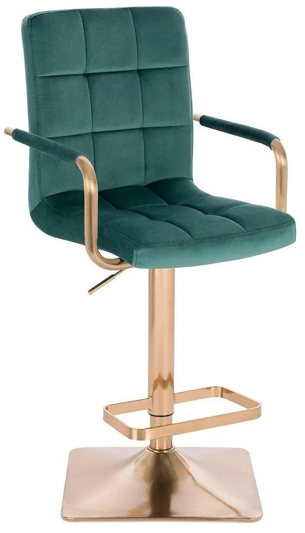Objevte moderní eleganci s barovou židlí Verona Gold Velur, která se díky svému designu hodí do kuchyní, restaurací, barů nebo luxusních obchodů. Její polstrovaný sedák a opěrka zad potažené měkkým semišem Velur poskytují vysoký komfort při sezení, zatímco zlaté područky a hranatá podstava vytvářejí sofistikovaný vzhled. Velur je známý svou hebkostí, odolností a snadnou údržbou, což z této židle činí praktickou volbu i do náročnějších prostředí. Díky výškově nastavitelné ocelové konstrukci a otáčení o 360° si uživatelé užijí maximální pohodlí, zatímco opěrka nohou zajišťuje stabilní sezení. Tento model je ideální pro moderní interiéry, kde oceníte nejen vzhled, ale i funkčnost a komfort.