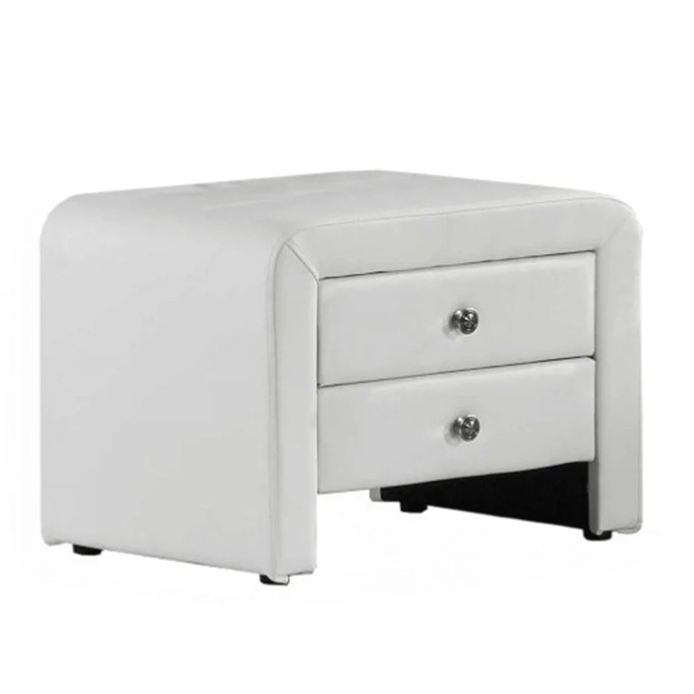 Čalouněný noční stolek LYONOG v bílé barvě spojuje elegantní vzhled s praktickou funkcí. dva šuplíky nabízejí prostor pro drobnosti a večerní potřeby na dosah. Povrch je potažený ekokůží, která je příjemná na dotek a snadná na údržbu. Rozměry 50 × 38 × 37 cm zaručují dostatek místa bez zbytečného přeplňování pokoje. Dodání v demontu usnadňuje dopravu a montáž, a 24měsíční záruka dává jistotu kvalitního produktu. Díky svému modernímu vzhledu se hodí k řadě ložnicových interiérů a snadno se kombinuje s dalším nábytkem.