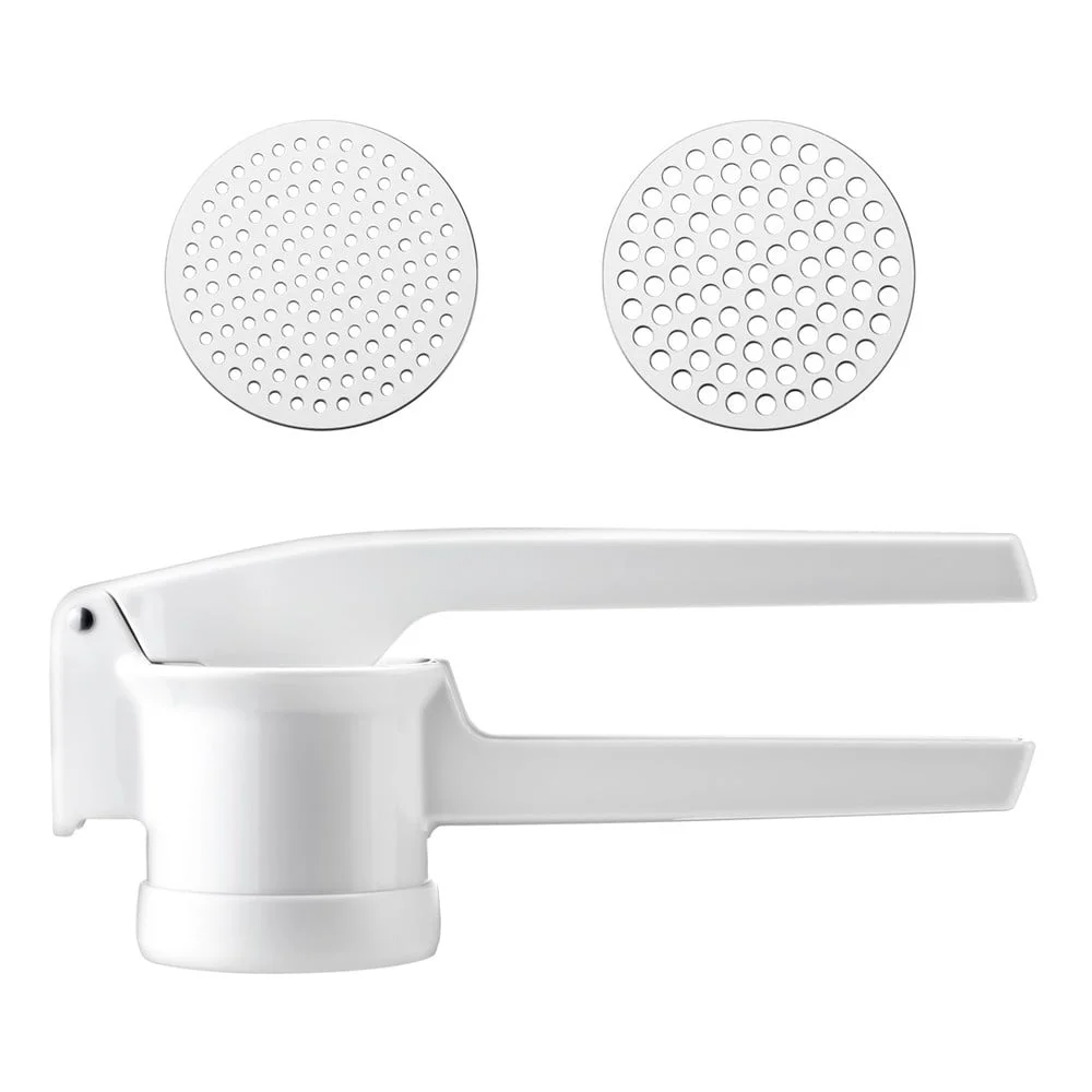 Praktické mačkadlo na brambory a těsto Handy od značky Tescoma kombinuje pevnost s lehkostí, což zajišťuje pohodlné používání. Součástí balení jsou dva vyměnitelné disky, které vám umožní snadno připravit nejen krémovou bramborovou kaši, ale i různé druhy těstovin nebo jiné pokrmy.