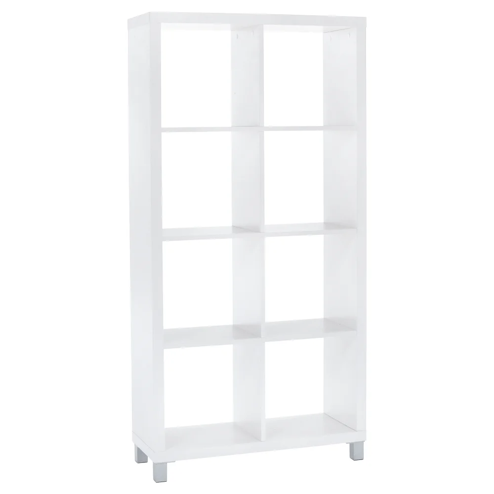 Univerzální regál o rozměrech 76 × 29 × 153 cm je vyroben z DTD laminované desky a má tloušťku 3,5 cm, což zaručuje stabilitu při každodenním používání. Bílá povrchová úprava je odolná a snadno se udržuje.