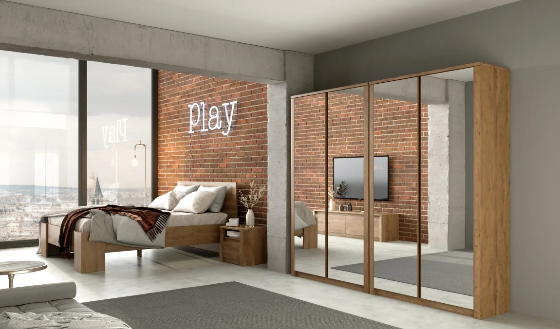 MARLETT ložnice se zrcadly – dub lefkas tmavý Ložnice