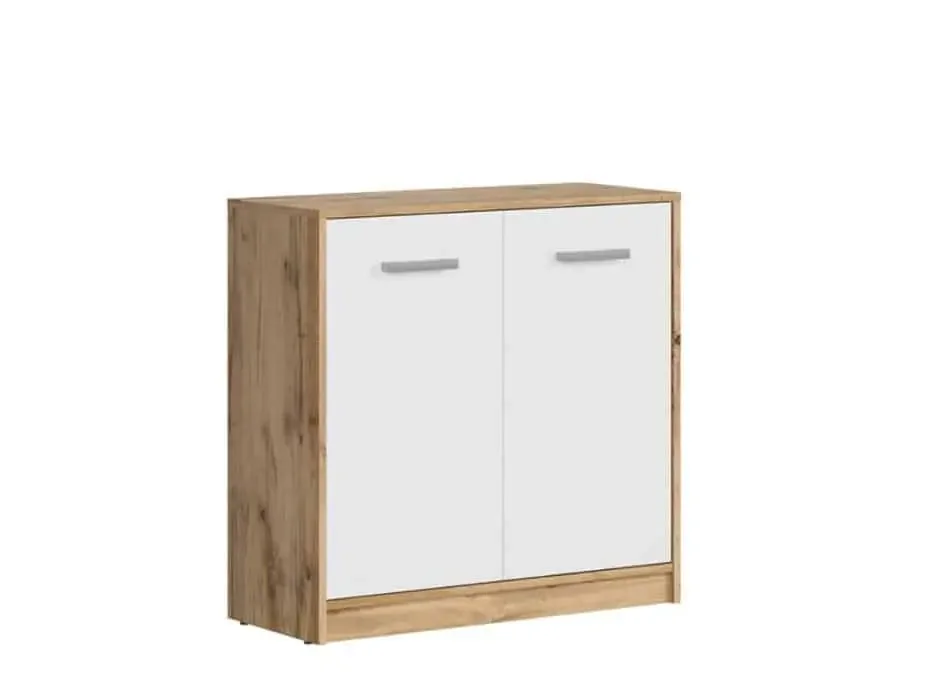 MATOS KOM2D je komoda s dvoubarevným provedením dub wotan a matná bílá, která pomáhá udržet pořádek v každém domově. Je vyrobena z laminy a nabízí praktickou polici pro uspořádání drobností, zatímco plastové úchyty v barvě nerezu dodávají moderní vzhled. Maximální nosnost police činí 4 kg. Dodáváno v demontu, montáž je rychlá a snadná. Lze ji kombinovat s dalším nábytkem ze systému Matos pro jednotný design celého prostoru. Díky neutrálnímu tónu se hodí do moderních i skandinávských interiérů a poskytuje praktický úložný prostor.
