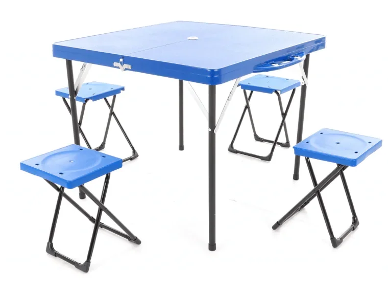 Skládací piknikový set pro čtyři osoby je ideálním řešením pro výlety autem, dovolenou i stanování. Lze ho snadno složit do kompaktního kufru, takže zabírá minimum místa při přepravě a skladování.
