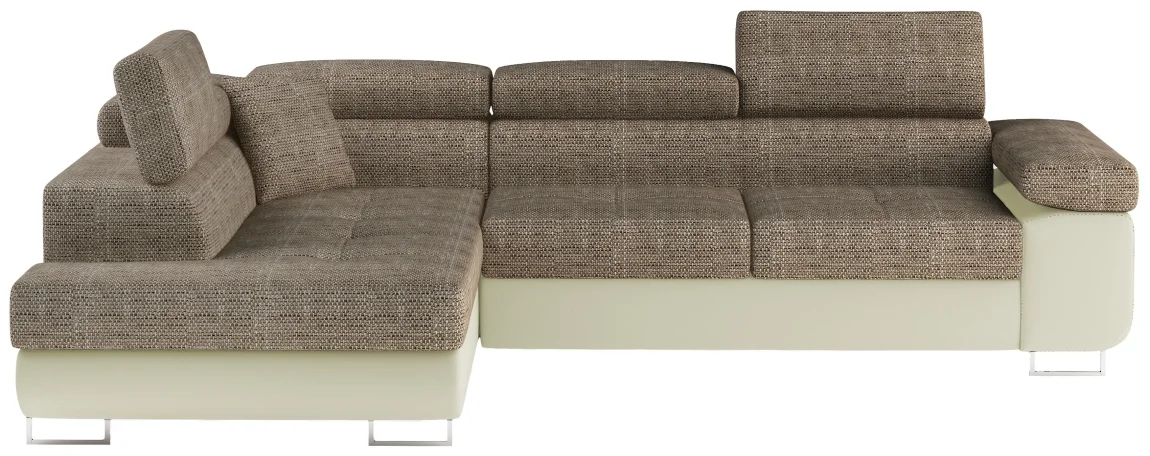 Sedačka MENDON 01 v levém provedení spojuje pohodlí a styl díky kombinaci hnědé látky Berlin 03 a béžové ekokůže Soft 33. Tato kombinace materiálů zaručuje dlouhou životnost a snadnou údržbu.