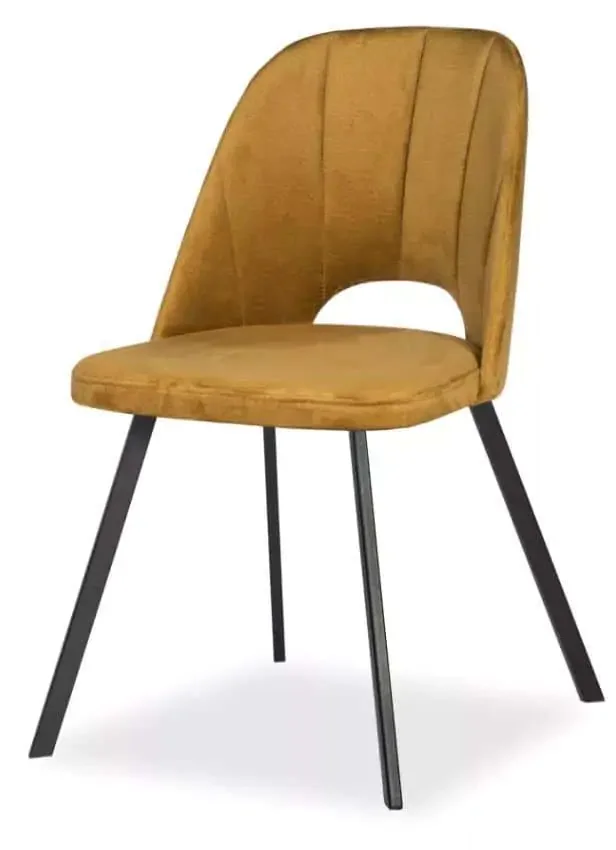 Kovová konstrukce s čalouněným sedákem zaručuje pohodlné sezení při každodenním stolování. K dispozici je několik odstínů potahových látek podle vzorníku, takže si židli snadno sladíte s vaším interiérem. Nosnost až 120 kg potvrzuje její stabilitu a odolnost pro každodenní provoz. Podnož je v černé barvě kovu, čímž židli dodává moderní i nadčasový vzhled vhodný do kuchyně, jídelny či obývacího prostoru. Pro dokonalý set doporučujeme doplnit jídelní stůl z naší nabídky. Židle je díky snadné údržbě a odolnému čalounění vhodná pro každodenní použití i rodiny s dětmi.