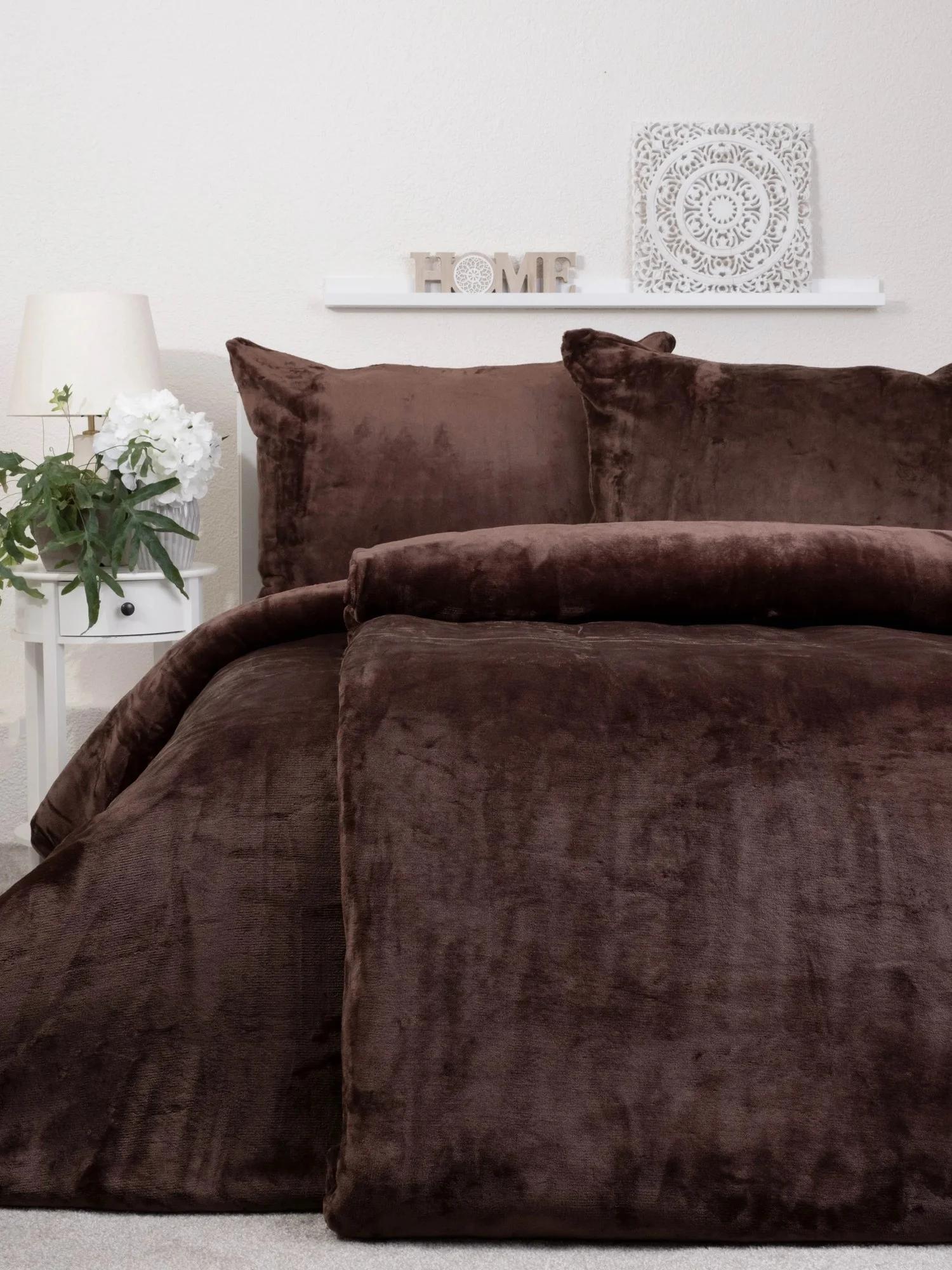 Objevte jedinečnou hebkost a teplo s naším mikroplyšovým povlečením Laura v elegantní tmavě hnědé barvě. Vyrobené z jemných syntetických vláken technologií pletení, nabízí mimořádnou měkkost, odolnost a komfort, ideální pro chladnější období.
