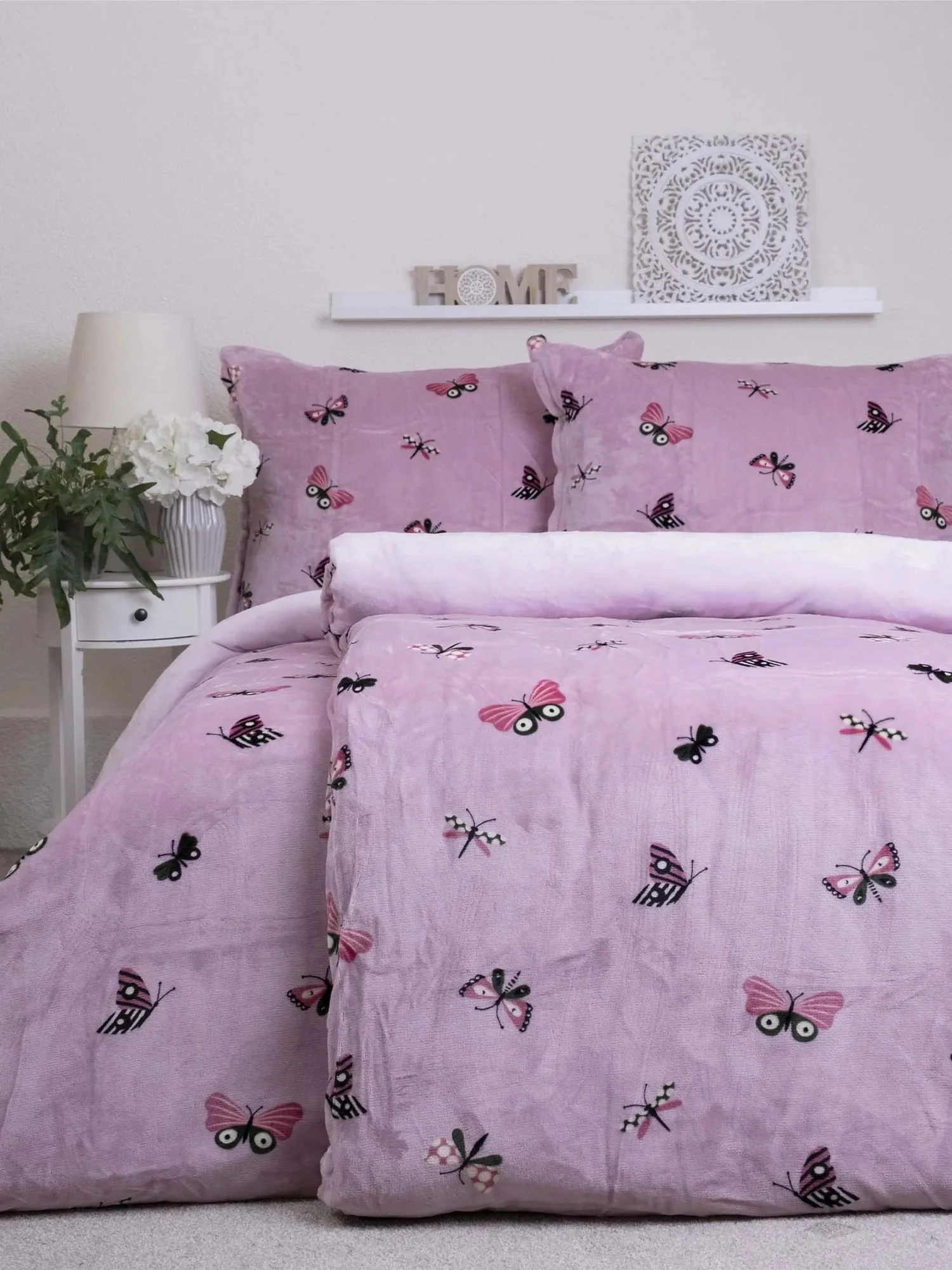 Objevte komfort a eleganci s naším exklusivním mikroplyšovým povlečením s motivem motýlků v jemných růžových odstínech. Ideální volba pro ty, kteří chtějí spojit příjemný pocit na dotek s moderním vzhledem ložnice.