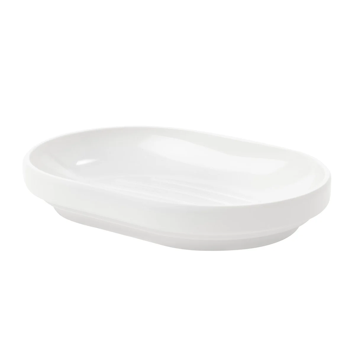 Přidejte do koupelny nádech jednoduché elegance s miskou na mýdlo z bílé řady Umbra Step. Tato miska patří ke kompletní sadě doplňků a vyniká čistým designem i praktností. Vyrobena z melaminu, odolného materiálu, který vydrží každodenní používání a snadno se čistí. Její kompaktní tvar šetří místo na umyvadle, zatímco praktické řešení zajistí pohodlné dávkování mýdla. Pokud hledáte jednotný vzhled koupelny, skvěle doplní ostatní doplňky ze stejné série a dodá prostoru svěží, moderní dojem.