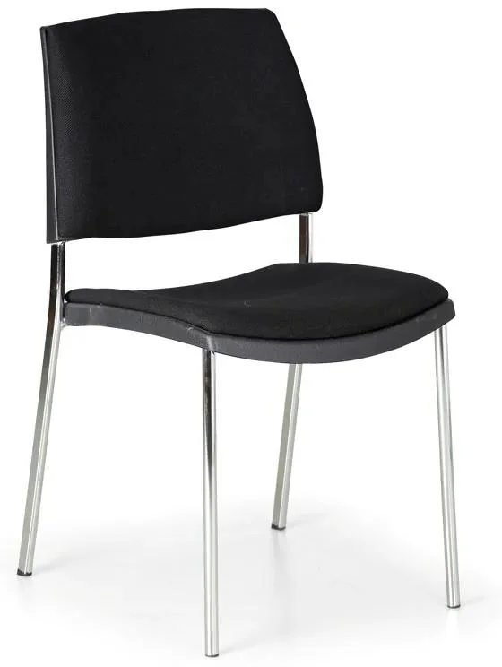 Spodní části nohou jsou opatřeny praktickými plastovými zakončeními, která chrání podlahu. Komfort zajišťují bohatě polstrované sedák a opěrák potažené kvalitní textilií, odolnou vůči opotřebení. Díky své stohovatelnosti je ideální pro flexibilní uspořádání v konferenčních místnostech či zasedacích prostorách. Nosnost židle je až 120 kg, přičemž je dodávána ve složeném stavu, což usnadňuje její skladování a manipulaci. Tento produkt je vhodný pro moderní pracovní prostředí, kde je kladen důraz na komfort a estetiku.