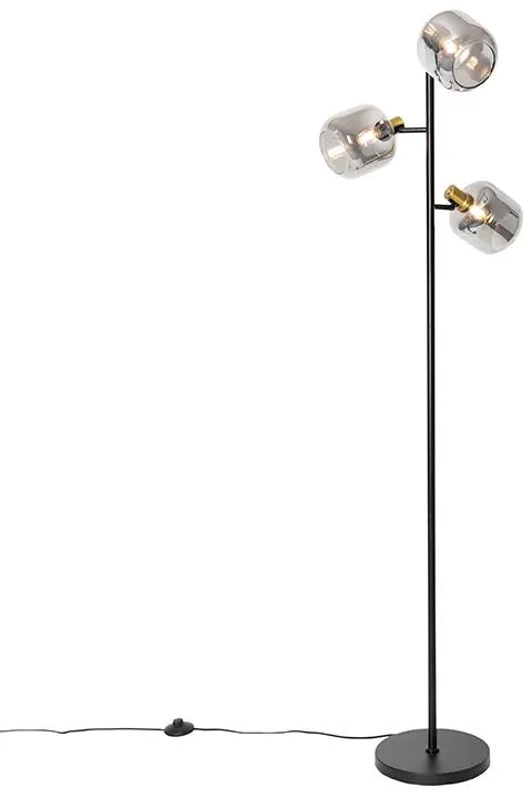 Osvětlete svůj domov stylově s elegantní stojací lampou Zuzanna. Tento designový kousek v černé barvě v kombinaci s třemi kouřovými skleněnými stínidly vytváří příjemné a atmosférické osvětlení.