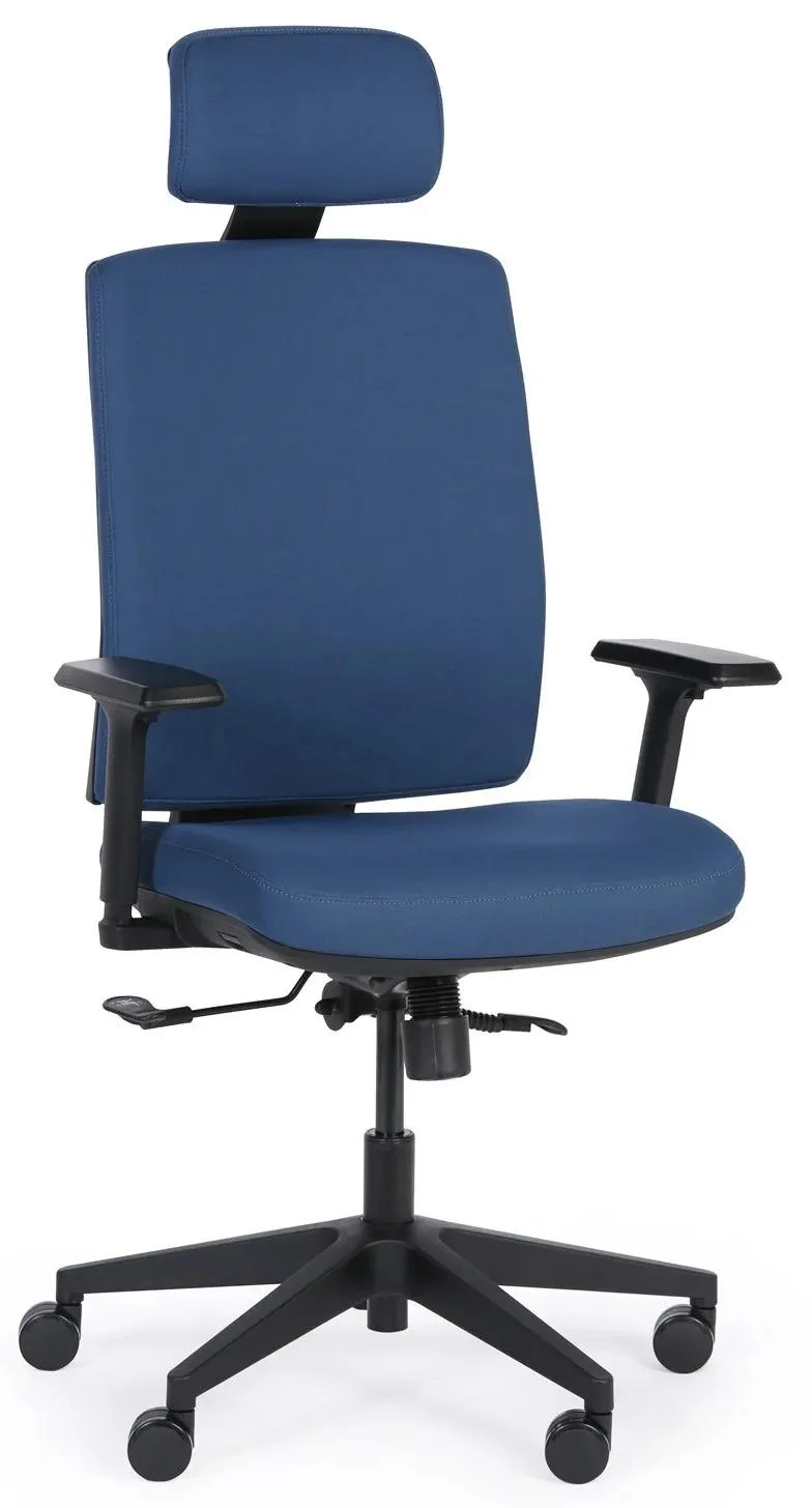 Moderní kancelářská židle Chester v atraktivní modré barvě nabízí komfortní sezení díky kvalitnímu látkovému čalounění. Díky synchronnímu mechanizmu se skvělými ergonomickými vlastnostmi se opěrák automaticky přizpůsobí poloze sedícího, což zajišťuje pohodlí během dlouhých pracovních dní.