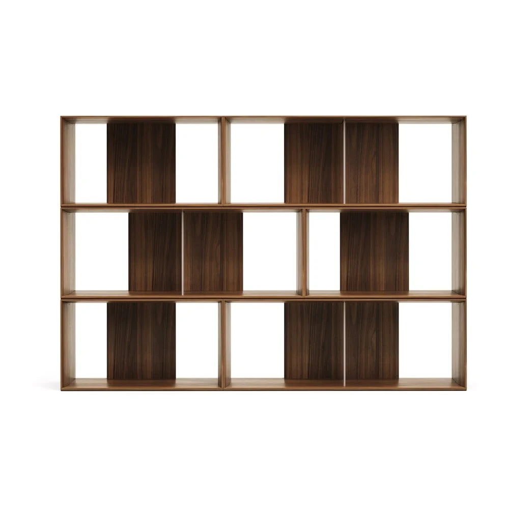 Objevte univerzální modulární policový systém v elegantním dekoru ořechu, který se skládá ze šesti částí – tří větších a tří menších modulů, které jsou navzájem kompatibilní.