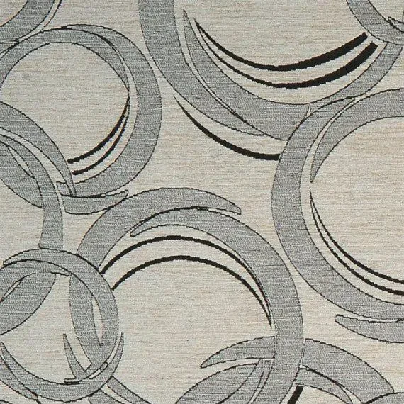 Monita 06 představuje stylovou látku s opakujícím se vzorem kruhů na jemně strukturovaném podkladu. Šířka materiálu činí 140 cm a hmotnost 425 g/m² zaručuje pevný a vyvážený základ pro nábytek i doplňky.